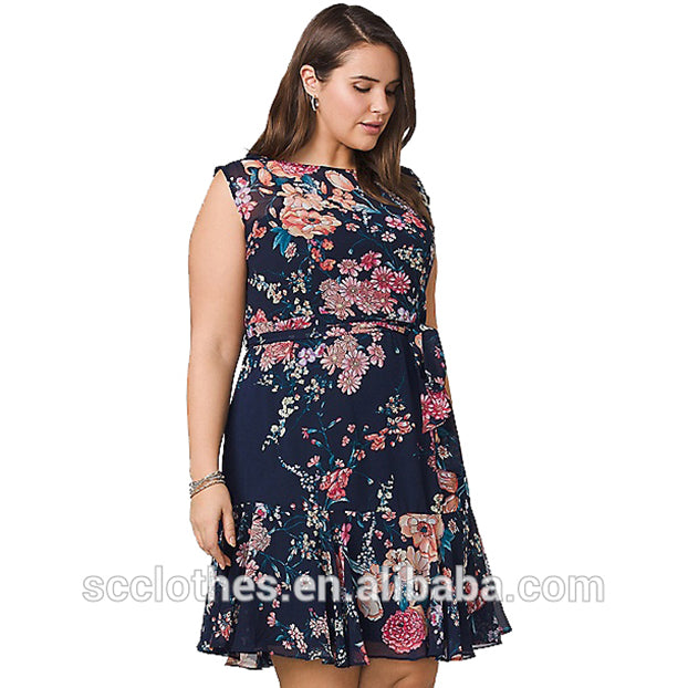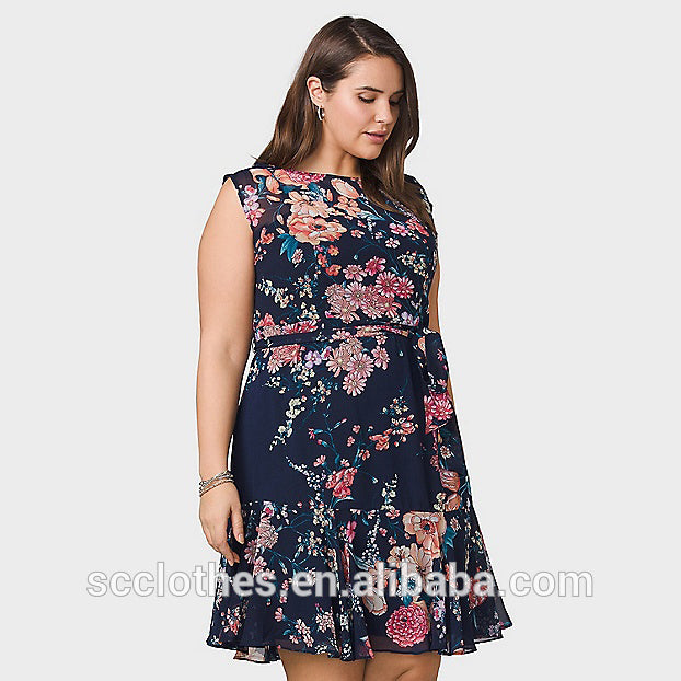 Digital Print Flower Plus Size Night Dress For Fat Girl Ladies